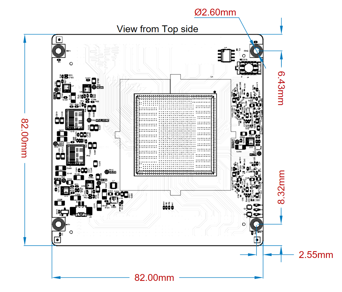 The MitySOM-A5E Standard is a system on module featuring an Altera Agilex 5E SoC (System on a Chip) and includes up to 656KLE FPGA fabric, dual core Cortex-A55 + dual core Cortex-A76, on-board power supplies, and memory subsystems. The Altera Agilex 5 delivers 2.5x the performance at 50% less power consumption versus the Cyclone V SoC.